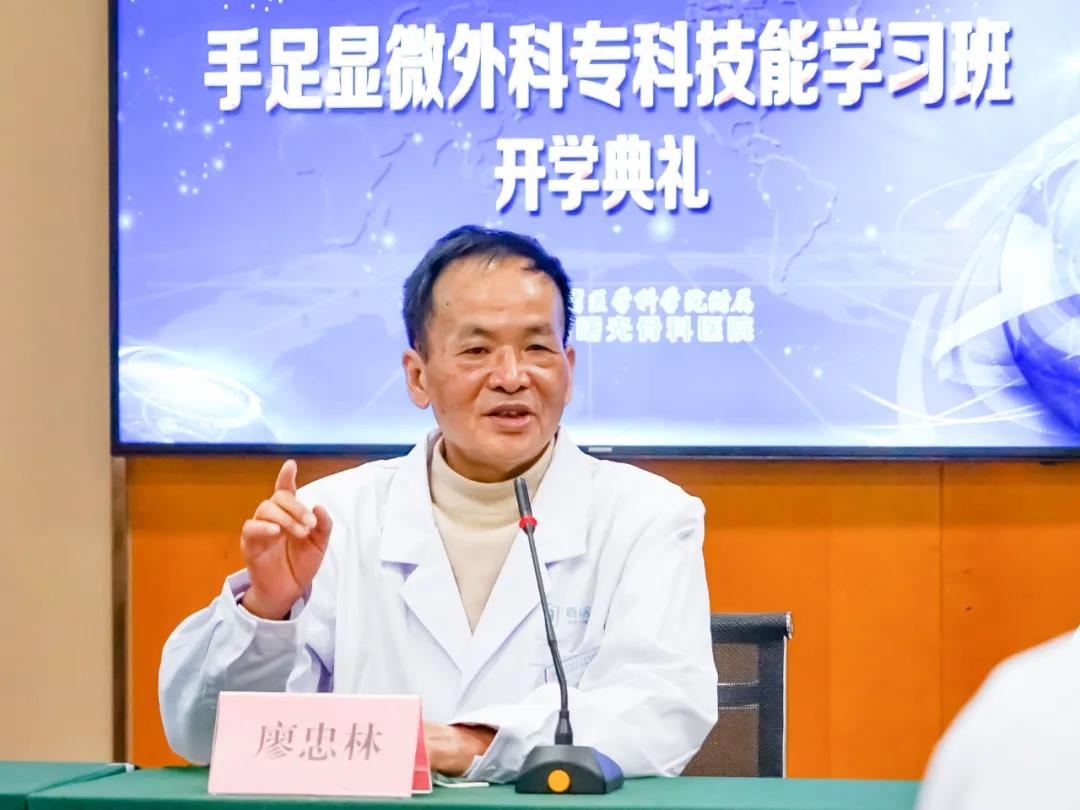 开班仪式上,嘉佑曙光骨科医院院长、江西省显微(手)外科学会名誉主委廖忠林对全体学员的到来表示热烈欢迎。廖院长在讲话中谈到,江西省手足显微外科历经50年的发展,通过探索创新和不懈努力,显微外科面貌焕然一新,技术日臻成熟。廖院长十分重视手足显微外科的传帮带,对学员寄予厚望。未来在于青年,希望大家严谨治学、开拓进取,继续发挥做精、做细、做强的学科精神,为学科事业发展贡献力量。